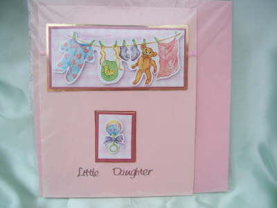 VerseA sweet little bundle To cuddle and kissNo joy in the worldCould be greater than this.Congratulations on your new daughter.Matching envelope.Size 11cm x 13.5cmPrice £2.25